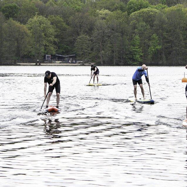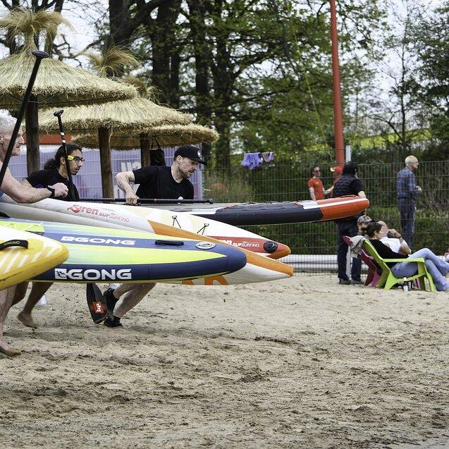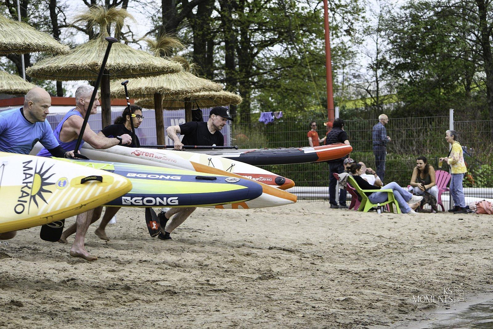 Im Anschluss fand das Langstreckenrennen der Stand Up Paddler*innen statt, das leider aufgrund eines Gewitters zunächst abgebrochen und – mit einiger zeitlicher Verzögerung – wieder aufgenommen wurde, was den Sportler*innen jedoch nicht den Spaß an der Sache verdarb. Bereits am Vortag stand für sie das ‚Technical Race‘ auf dem Programm, bei dem es hoch her ging.