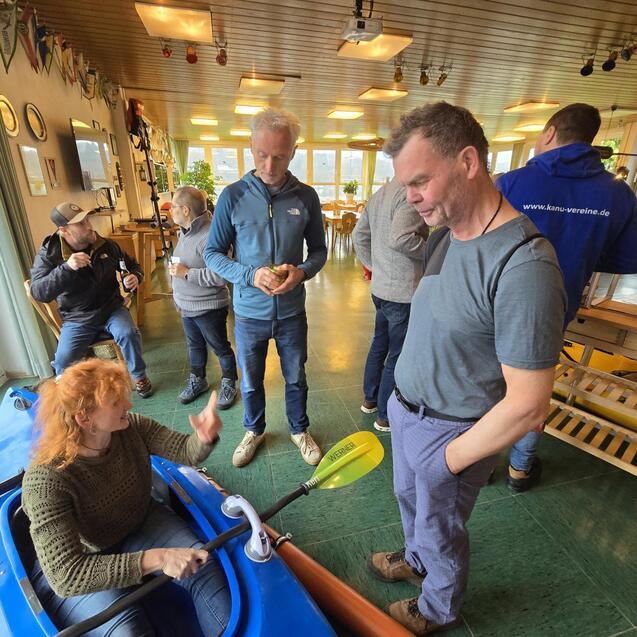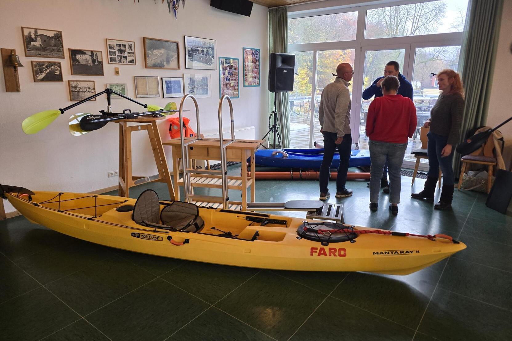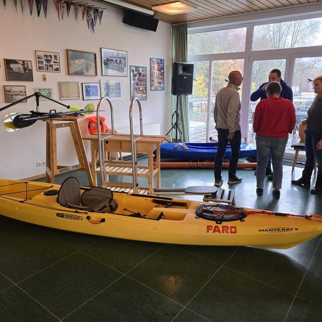Besonders beeindruckend war eine selbstgebaute Einstiegshilfe aus KG-Rohren, die während der Vorstellung schnell zum Gesprächsthema wurde. Das stabile, aber leichte Hilfskonstrukt ermöglicht auch Personen mit eingeschränkter Mobilität einen sicheren und selbstbestimmten Einstieg ins Boot.