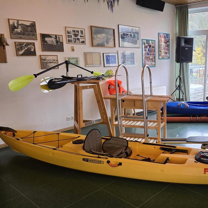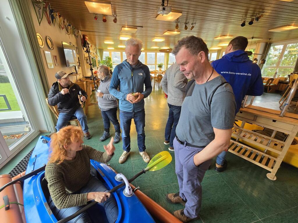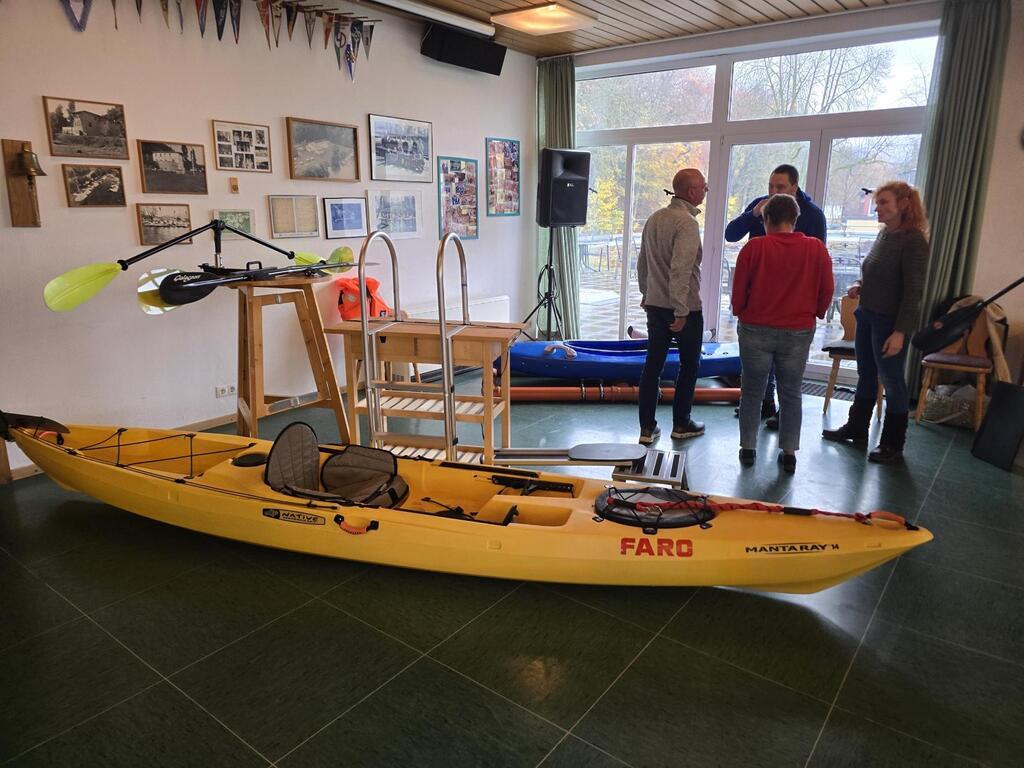 Besonders beeindruckend war eine selbstgebaute Einstiegshilfe aus KG-Rohren, die während der Vorstellung schnell zum Gesprächsthema wurde. Das stabile, aber leichte Hilfskonstrukt ermöglicht auch Personen mit eingeschränkter Mobilität einen sicheren und selbstbestimmten Einstieg ins Boot.