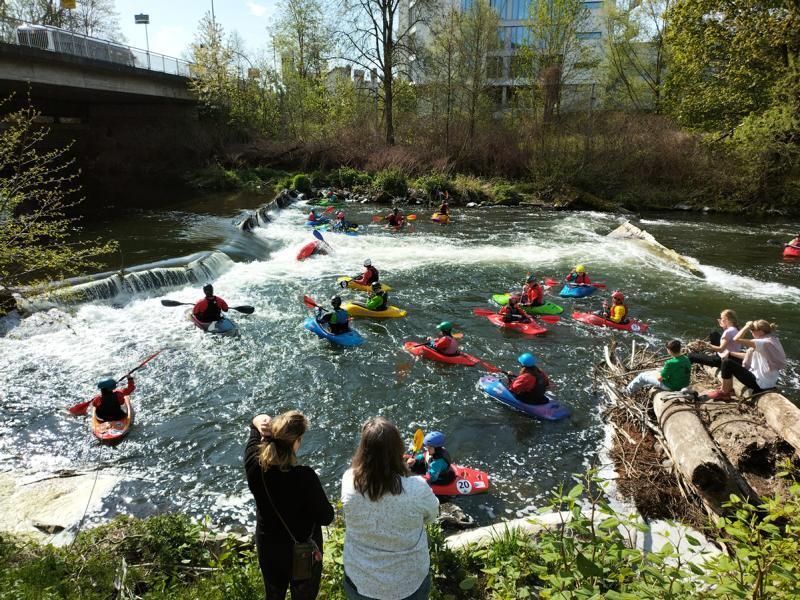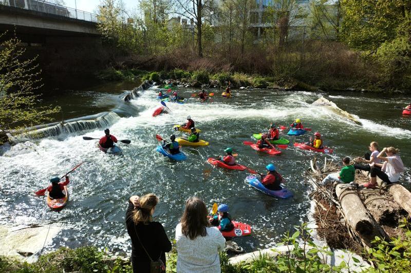 Eine Antwort lieferte am 18. und 19. April 2026 der zweite Lauf zum Deutschen Schüler-Cup im Kanu-Freestyle, der auf der Ruhr in der Welle vor dem Bootshaus des SKC Neheim-Hüsten ausgetragen wurde. Denn Freestyle-Karrieren beginnen nicht in der „Monster Wave“. Sie starten früh – an geeigneten Playspots, mit erfahrenen Trainern, viel Übung und vor allem mit Begeisterung fürs Bootfahren. Genau hier setzt der Deutsche Schüler-Cup an: Er verbindet sportliche Entwicklung mit Spaß, Motivation und einem geschützten Rahmen für Kinder und Jugendliche.