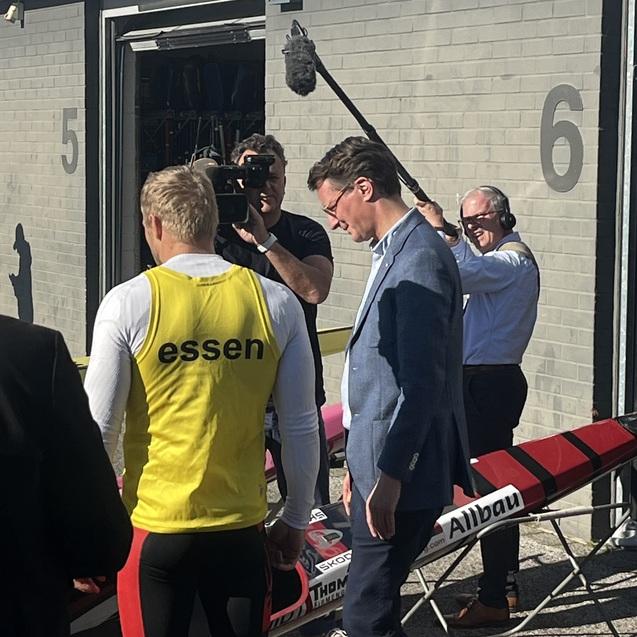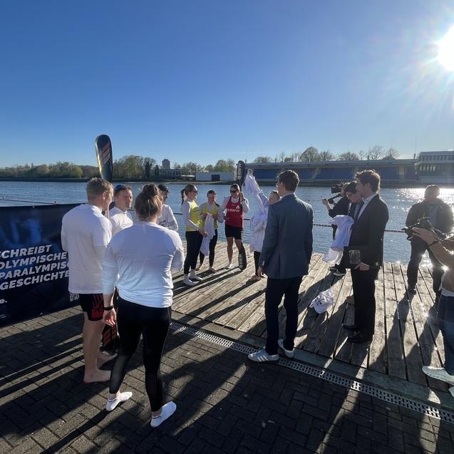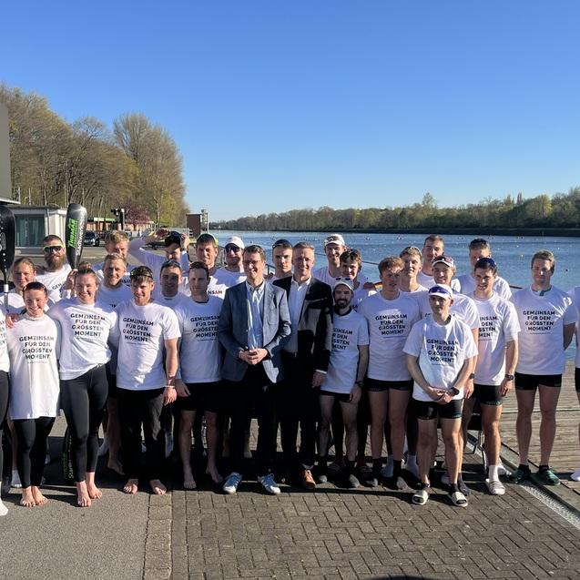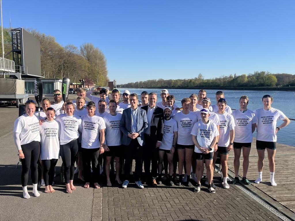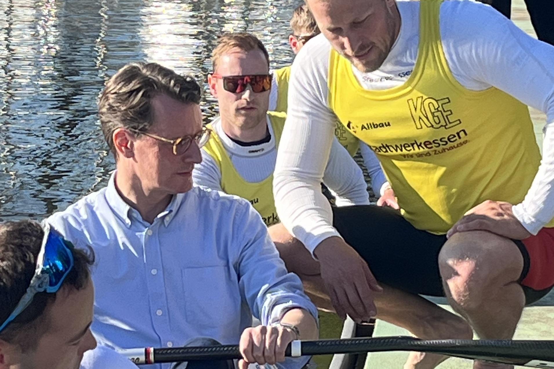 Begleitet wurde der Besuch unter anderem von Jule Hake und Max Rendschmidt, die als Olympiamedaillengewinner für die sportliche Exzellenz der Region stehen. Unter Begleitung von Max Rendschmidt stieg Ministerpräsident Wüst dann sogar selbst in ein K4-Boot und sammelte persönliche Eindrücke aus der Sportler-Perspektive.
