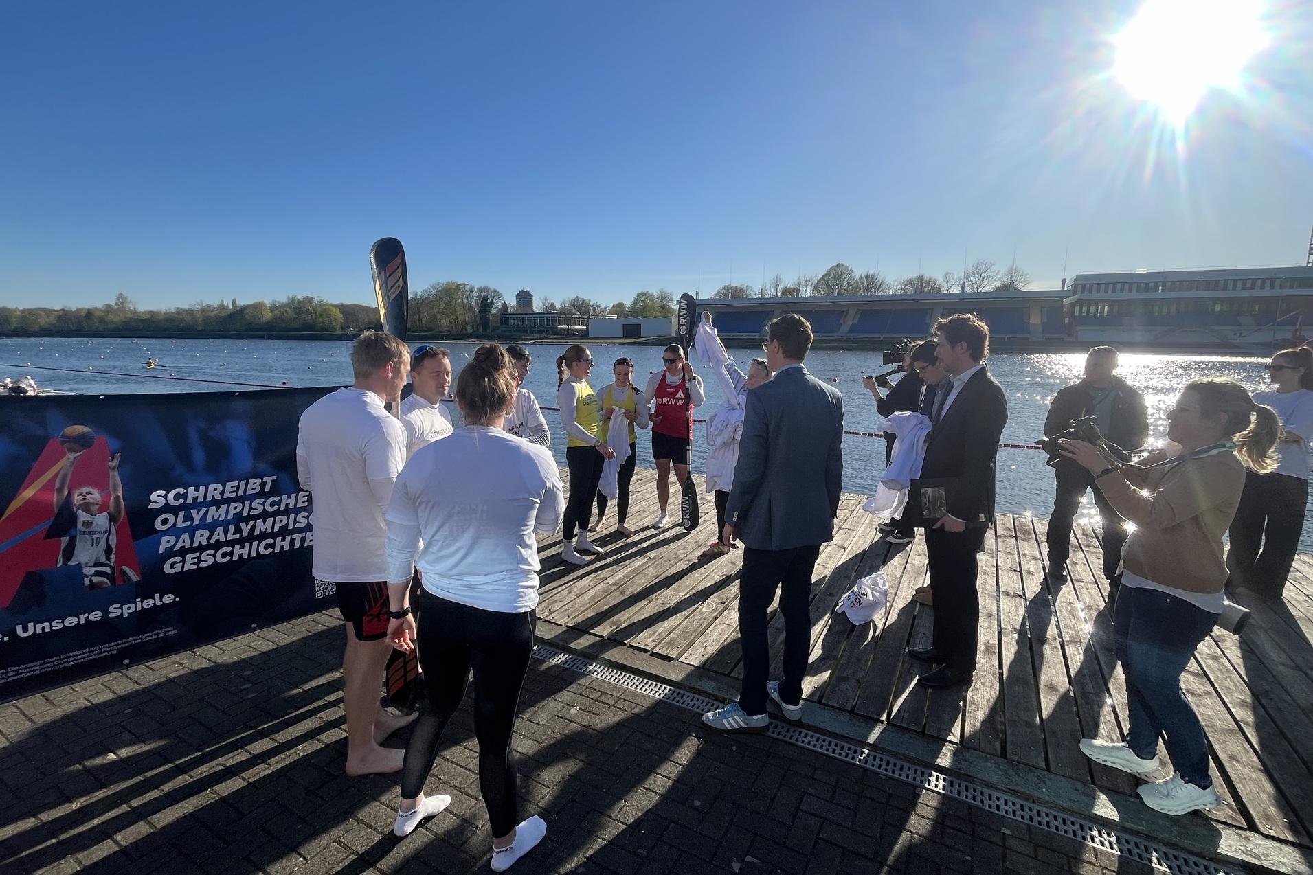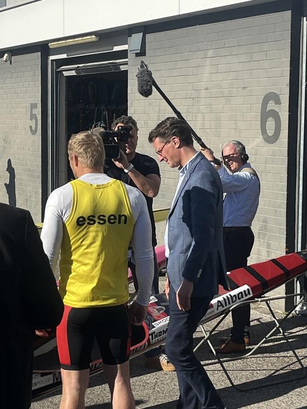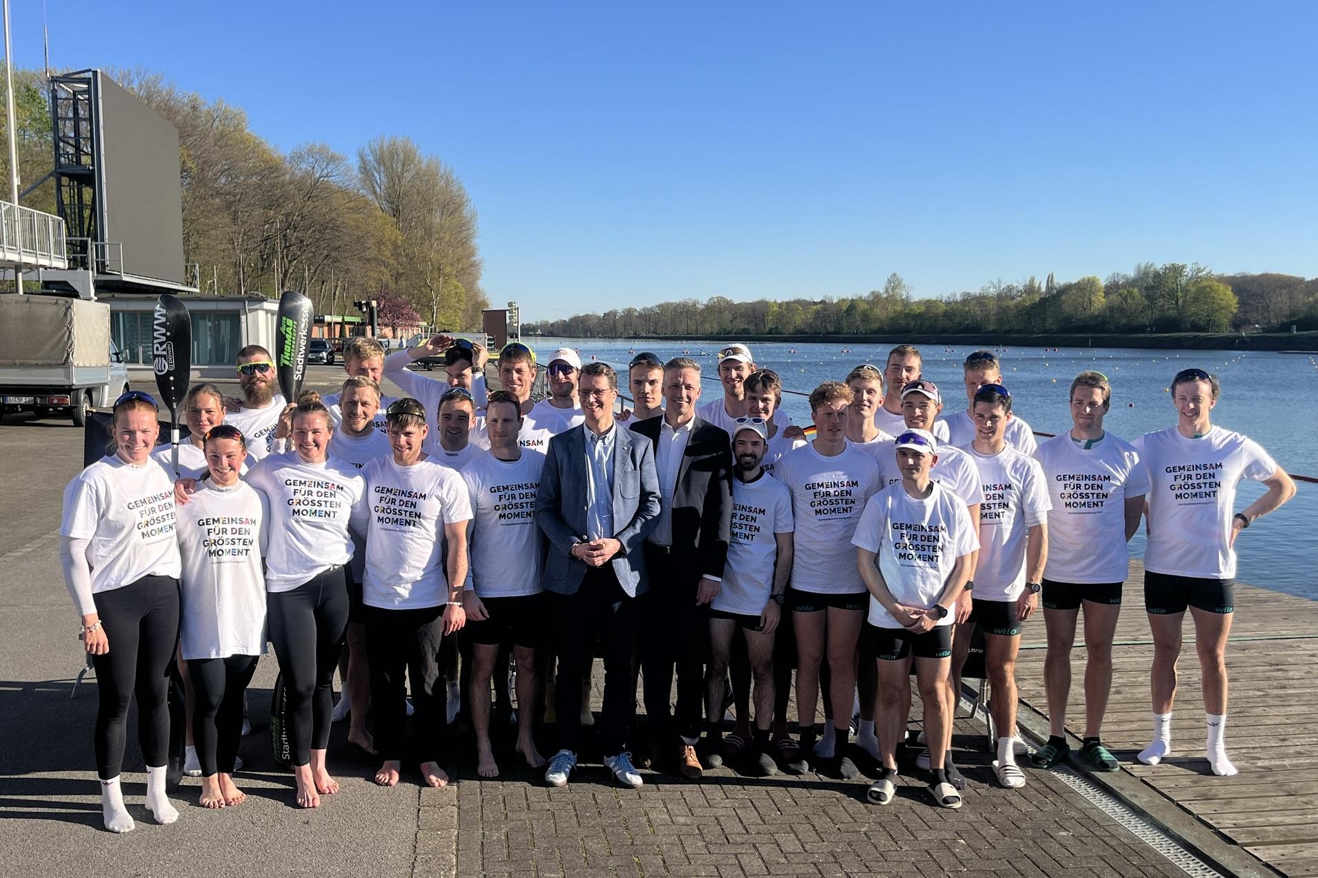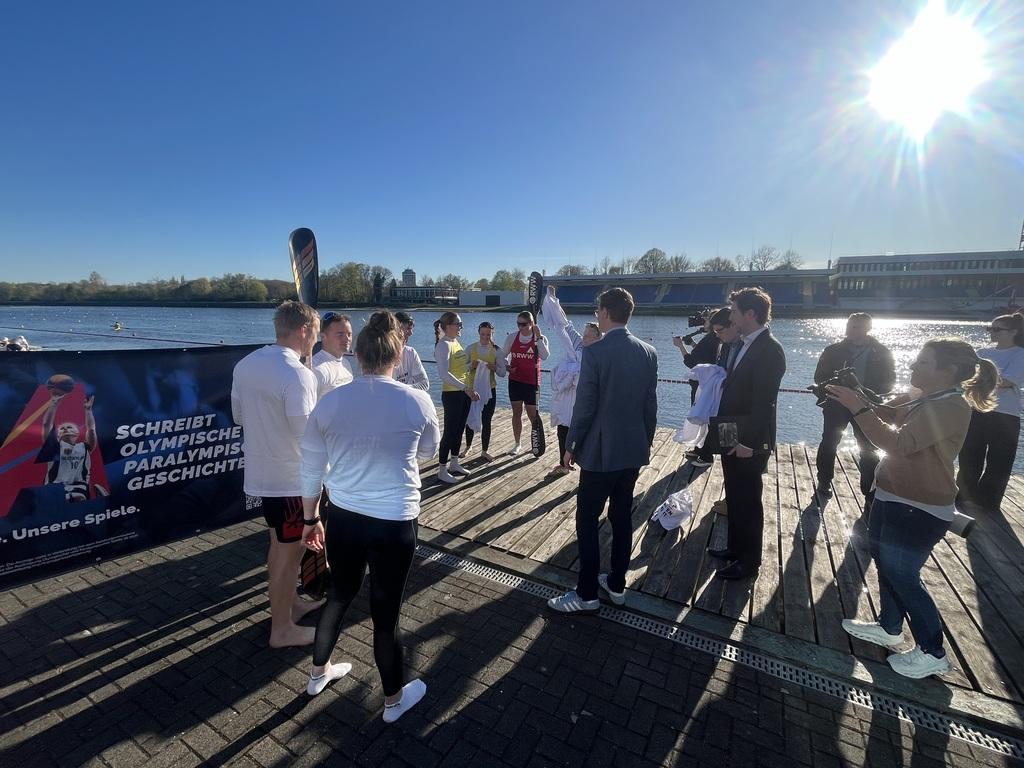 Begleitet wurde der Besuch unter anderem von Jule Hake und Max Rendschmidt, die als Olympiamedaillengewinner für die sportliche Exzellenz der Region stehen. Unter Begleitung von Max Rendschmidt stieg Ministerpräsident Wüst dann sogar selbst in ein K4-Boot und sammelte persönliche Eindrücke aus der Sportler-Perspektive.