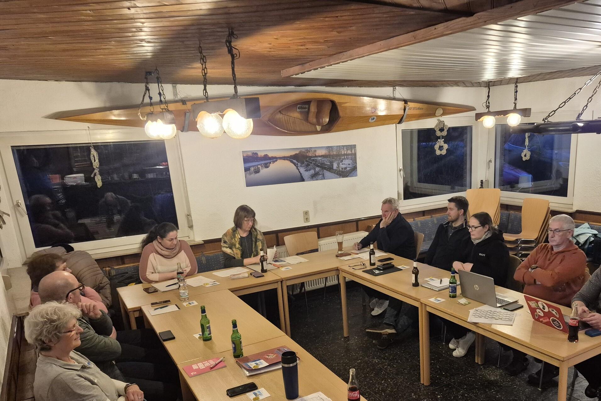 Zur ersten Vorstandssitzung nach dem Bezirkstag trafen sich 13 Vorstandsmitglieder im Bootshaus des KC Hamm-Marl in Haltern. Dort wurden wir am gut eingeheizten Kamin mit einer leckeren Pizza empfangen. Danke an den Verein.